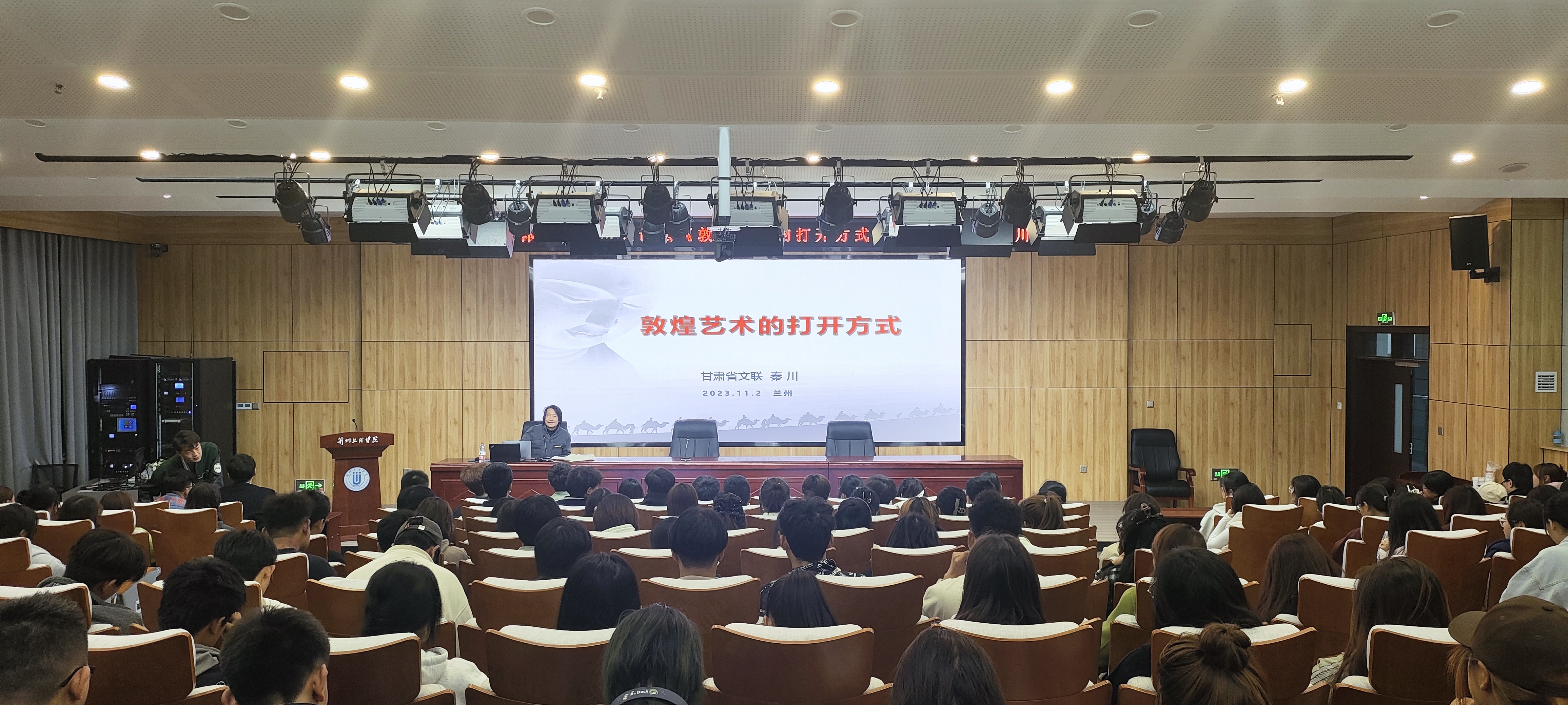 11月2日晚,yl7703永利邀请到《大河西流》、《敦煌画派》等多部敦煌题材纪录片的导演秦川,为22、23级数字媒体艺术专业学生做题为《敦煌艺术的打开方式》的讲座,讲座由数媒学院院长李恒杰主持。