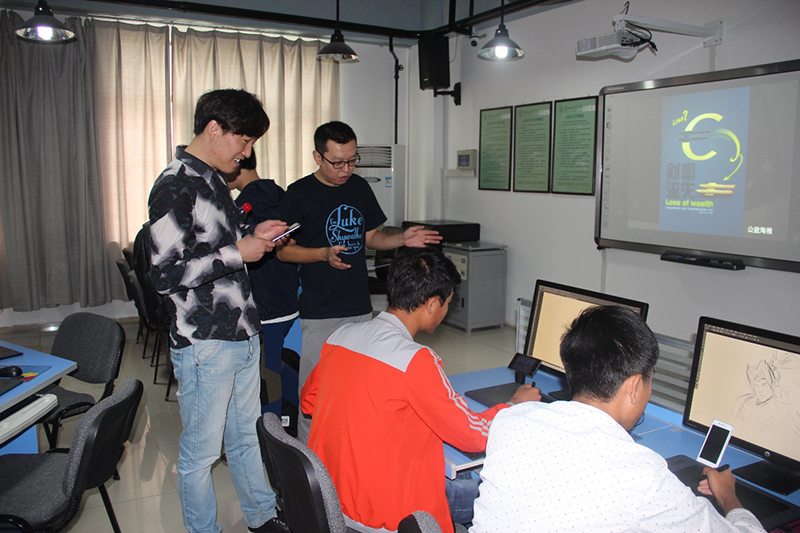 讲座开始后,当孔令强主任走上台,同学们都为主任的年轻有为而震惊。首先孔令强主任向文理数媒学子介绍了山东艺术学院数字媒体专业的 “大一打基础,大二做学精通,大三出作品,大四进入市场”的教学理念,提出“圆桌教学”,目的在于让学生和老师有更好的交流和沟通,通过联合教程即四个老师针对一个项目多方位辅导来提高项目的质量。其次孔令强主任特别指出“实践”二字,学生可通过参加比赛、校企联合等方式提高自己的实践能力。在讲座间隙,孔令强主任为大家展示了他与学生的作品《墨迹》,为文理学子又带来了一场视觉与听觉上的盛宴。在其他作品中都以道德为主线,传递人性的正能量,闪烁着技术和艺术的光芒。