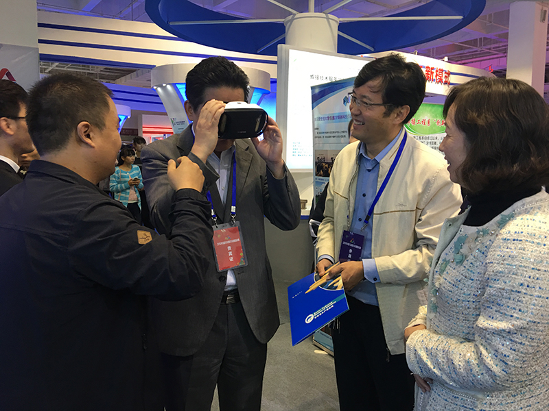 甘肃省教育厅副厅长刘宏莅临我院展区参观指导,并对我校参展的VR虚拟展示项目和立体影视转制项目给予充分肯定。