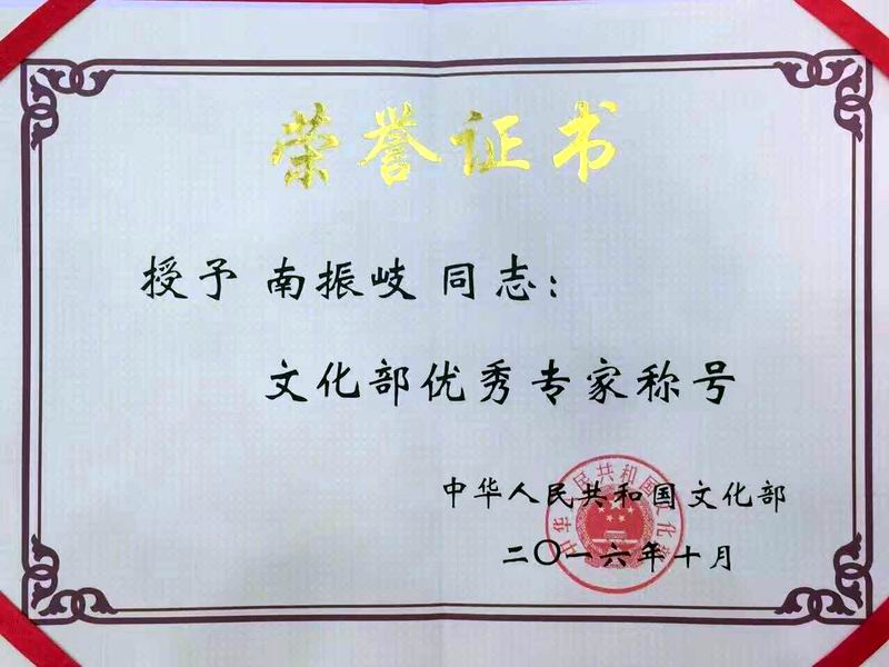 文化部优秀专家颁奖大会和全国文化部厅局长会议于2017年1月2-4日在京召开。三年一度的文化部优秀专家第一次向民营文化企业开放获殊荣。我校特聘教授南振岐先生获得文化部优秀专家称号。