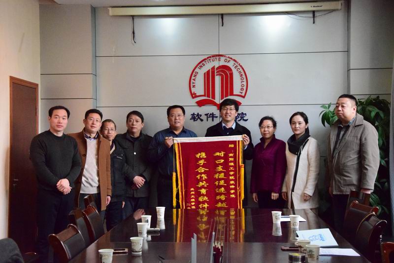 “对口支援促进跨越发展,携手合作共育软件英才。”李恒杰院长将一面绣着烫金大字的锦旗赠送给南阳理工学院软件学院刘黎明院长。这也预示着两所高校兄弟学院的合作交流从这一刻紧紧联系在一起。