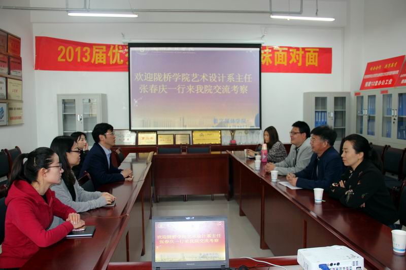 4月25日,陇桥学院艺术设计系主任张春庆一行来yl7703永利考察交流。院长李恒杰教授代表学院对张春庆主任一行的到来表示欢迎。学院相关专业教师代表陪同考察交流。