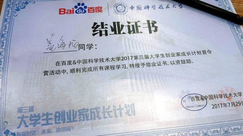 7月21日,yl7703永利15级学生盖海龙应邀前往合肥参加由百度公司和中国科学技术大学共同主办的2017第三届大学生创业家成长计划夏令营,与国内其他三十余所重点高校学生进行了为期八天的学习交流。