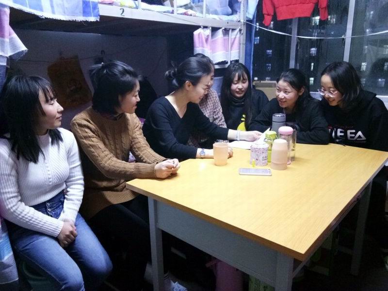 为积极响应学校创建文明校园的号召,2018年11月2日晚上九点整,很荣幸,在班长安瑶的陪同下来到本班女生宿舍7-610宿舍做客,谈心,与我们进行了一次近距离的心灵交谈。