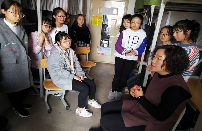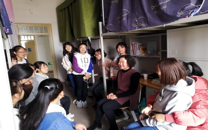 为积极响应学校创建文明校园的号召,2018年11月15日中午12点45分,数媒三班的班主任王欣老师在班长李强,团支书马晓燕的邀请下,来到本班的女生宿舍6-605做客,谈心。数媒三班全体女生参与了此次活动。