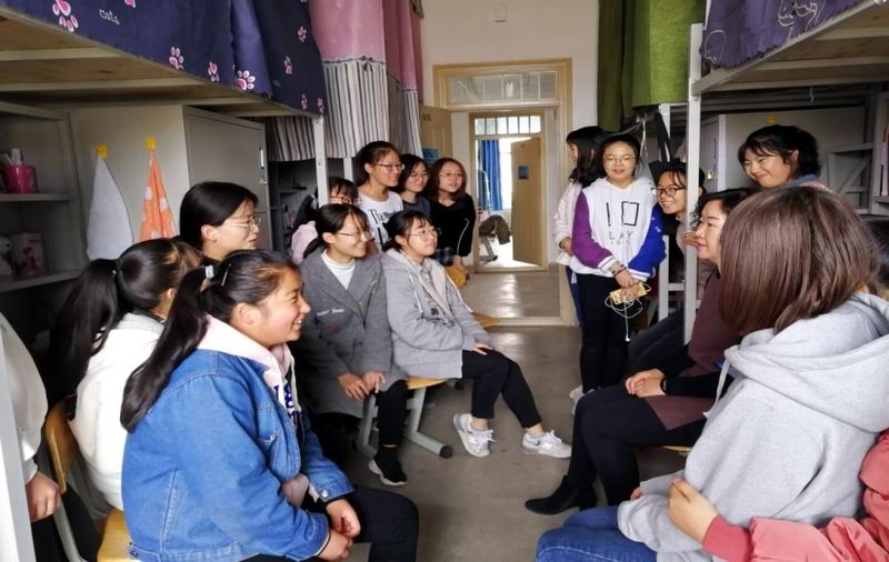 王欣老师来到宿舍后和全体女生开怀畅谈,就当前大学生最关心的人际交往问题、心理健康问题和情感恋爱问题这三个问题,结合社会经历以及女生当前的实际情况为同学们一一讲解,解答了同学们心中的疑惑和不解,并且对遇到问题的同学做出了详细的方法指导。