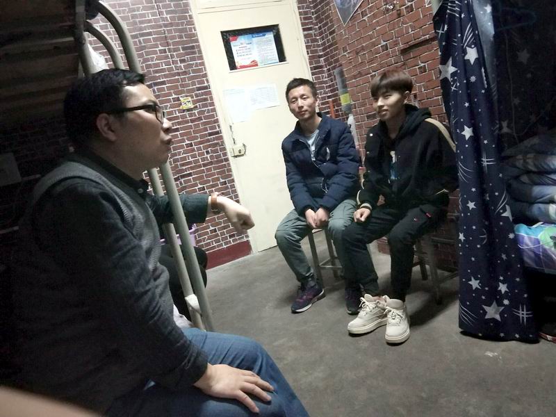 为积极响应学校创建文明校园的号召,2018年11月19日晚上20:30分,数媒三班的马少斌老师在班长李强,组织委员王文虎的邀请下,来到本班的男生宿舍10-525做客,谈心。数媒三班男生参与了此次活动。