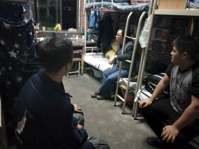 马少斌老师来到宿舍后和男生开怀畅谈,就当前大学生最关心的人际交往问题、心理健康问题和就业问题这三个问题,结合自身经历以及男生当前的实际情况为同学们一一讲解,解答了同学们心中的疑惑和不解,并且对遇到问题的同学做出了详细的方法指导。