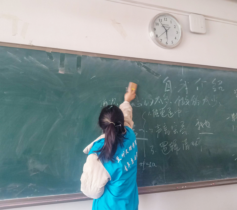 首先此次活动在陈康亮的带领下,参与本次活动的十余名志愿者于南校区3号教学楼前集合,并分发了清洁用具;之后志愿者们各自积极组队参加了此次“助力校园清洁”志愿者活动。紧接着分工明确的十余名志愿者依次进入教室,对每间教室桌椅的摆放、地面垃圾的清扫、黑板字迹的清洗以及最后垃圾的清理都按时完成。最后志愿者们准时在晚七点之前将门窗锁好离开教室。
