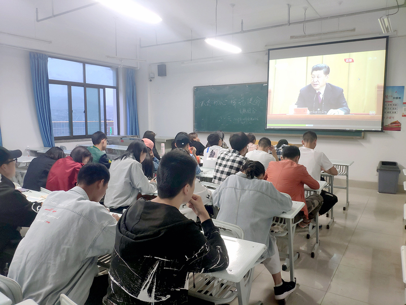 随着庄严的国歌声,此次会议随之开始,学生们认真观看和学习在纪念五四运动100周年大会上习近平总书记的重要讲话。会上,习近平总书记深刻阐述了五四运动的历史意义和发扬伟大五四精神的重要性,并对广大青年提出殷切期望。总书记强调,五四运动以来的100年,是中国青年一代又一代接续奋斗、凯歌前行的100年,是中国青年用青春之我创造青春之中国、青春之民族的100年。实践充分证明,中国青年是有远大理想抱负的青年,中国青年是有深厚家国情怀的青年,中国青年是有伟大创造力的青年!无论过去、现在还是未来,中国青年始终是实现中华民族伟大复兴的先锋力量!习近平指出,中国共产党立志于中华民族千秋伟业,必须始终代表广大青年、赢得广大青年、依靠广大青年,用极大力量做好青年工作,确保党的事业薪火相传,确保中华民族永续发展。