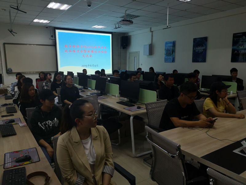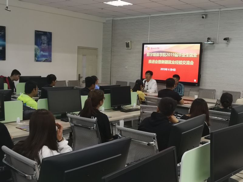 会上,姚林主任首先通报了目前我院2019届毕业生就业现状,他强调全体毕业生务必从思想上高度重视自身就业工作,倡导毕业生积极理性就业。此外,姚主任详细解读了高等学校毕业生签约及派遣信息中的有关政策,现场回答了同学们切身相关的就业困惑。随后,李恒杰院长结合日前为期一周对新疆政府与企业的考察访问经历,对全体毕业生作了就业动员讲话,他指出:“就业是民生之本,大美新疆,大有可为。新疆地大物博,近年来,在党和国家的大力支持下,经济活力强劲,各项政策利好,急需大量相关人才,同学们要立足实际,合理选择适合自己的工作,先就业再择业,早日为祖国边疆地区的发展贡献力量”。随后,李院长现场连线了我院赴新疆工作2018届优秀毕业生代表谢凡(现任和田市热瓦克阿勒迪社区党支部副书记兼居委会主任)和苟志强(现任达内集团院校经理),二位学长结合个人自身经历,从地理位置、工作环境、薪资待遇以及人文关怀等四个方面实事求是的介绍了新疆目前的发展状况,表示在未来的发展进程中数字媒体技术会越来越受到重视,我院毕业生在新疆一定会大有可为。通过和学长们良好的互动和充分的沟通后,我院毕业生纷纷表达了有志青年要到边疆去,到祖国最需要的地方的强烈意愿。