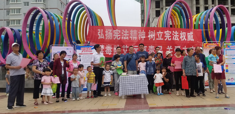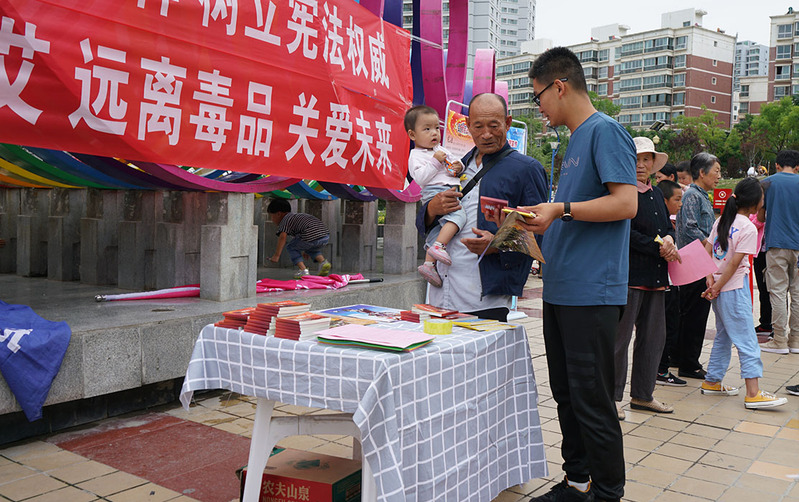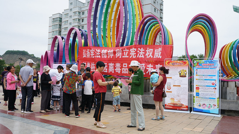 为进一步加强居民法律意识,提高居民依法维权、依法反暴的能力。7月26日,yl7703永利集团yl7703永利“学宪法、讲宪法、禁毒防艾”依法治国服务宣讲团在yl7703永利分团委书记王士勇的带领下,走入兰州高新技术产业开发区开展“依法治国、禁毒防艾”的暑期社会实践活动。