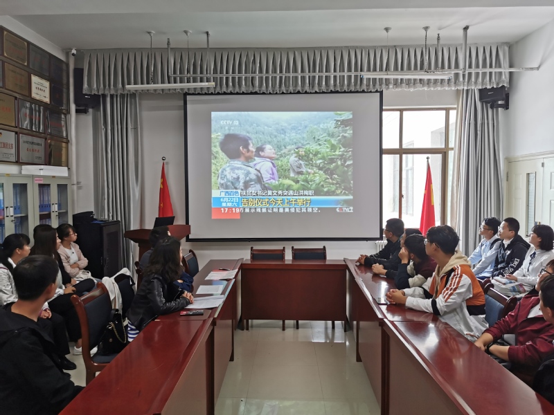 杨波老师首先宣读了中共中央宣传部印发的《关于广泛开展向黄文秀同志学习以及实际行动增强“四力”的通知》,紧接着观看“时代楷模”黄文秀先进事迹视频,在视频中我们了解到黄文秀同志是用生命坚守初心使命的优秀青年共产党员,是在脱贫攻坚伟大实践中涌现出来的时代楷模和先锋模范,是全国宣传思想文化战线践行“四力”的典范。