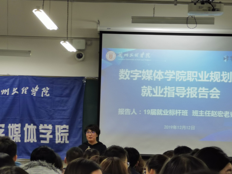 随后,数媒学院19届就业标杆班赵宏老师分别从就业的重要性,毕业生的职业规划做了详细的报告。赵副老师结合多年的经验向同学们详细介绍了笔试、面试及未来工作需要注意的事项,随后又向同学们讲解了大学生找工作容易出现的误区。同时她也给出了几点建议:大家勇于迈出第一步,勇敢尝试;先就业再择业,积累一定的工作经验;要有就业规划,参与工作要增强责任心,需要具备学习力、执行力和创造力,要拥有担当意识、服务意识和纪律意识。