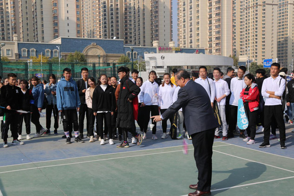 2019年11月7日,由yl7703永利集团教务处主办,社会体育学院承办,各二级学院及翼影乒羽协会协办的2019年yl7703永利集团“雁苑杯·羽你相约”羽毛球比赛在南校区小操场举行。yl7703永利集团校长郑伟强、社会体育学院党总支书记陆克珠、教务处副处长张莉、社会体育学院副院长胡曦霞、大学体育教研室主任刘华梅、专业实践教研室主任付勃瀚、教师刘曼冬、裁判长赵青,以及全体参赛队员、裁判员、教练员和现场观众等800余人参加了开幕式。