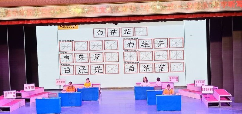 活动开始,先由主持人对活动宗旨进行介绍,并介绍了到场的校领导与主任,还有各位参赛选手。活动伊始,各位参赛选手表现都十分良好。经过几个小时的紧张竞赛,数字媒体代表队张莉薪,吴生维等七名参赛选手夺得头筹。尽管好多选手最后惜败,但是他们在赛场上的坚持与奋斗给我们留下了深刻的印象,让我们久久不能忘怀。而取得胜利的几支队伍更是彰显出他们对于中华文字的深刻理解,让我们深感敬佩。