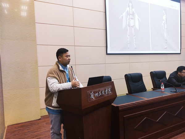 汇报会上,17级视觉传达设计(数媒方向)班的寇子生同学率先为同学们展示了自己的以及同学的实训成果,其中包括影视作品视觉效果设计、3D模型动画效果渲染及平面动画效果设计。随后17级数字媒体技术(游戏动画与影视后期)班闫鹏起同学展示了自己的以及同学的动画建模设计、模型动作设计以及场景环境建模模拟等相关作品展示。两位同学展示出的毕业综合实训作品质量高,展示效果好,博得同学们阵阵热烈的掌声。
