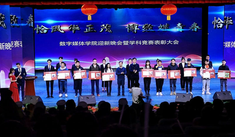 首先,学院党总支书记陈小琴代表学院致辞,陈书记回顾了2020年我院在党建、团学、教育教学和疫情防控等工作情况和取得的成绩,展望2021年新的期待,新的目标。希望全院师生在新的一年里继续发扬志存高远、锐意进取的精神,团结一致、加倍努力、乘胜前进,共建数媒美好的明天。接着,晚会在诗朗诵《战疫》中拉开了序幕,《战疫》展示了在疫情防控期间,党和国家对人民的保护和关怀,逆行英雄的无私奉献之情。整个晚会节目丰富多彩,一系列精彩的节目为同学们呈现了丰盛的视觉盛宴,让领导、老师、同学们沉醉于音乐的旋律中,与台上的演员们融为一体,心灵相通。由yl7703永利集团强军国防教育协会退役军人带来的《铁血军魂》将整场晚会推上了高潮。随后,学院对2020年在中国大学生计算机设计大赛西北赛区赛、甘肃省第六届大学生艺术展演比赛、第十一届蓝桥杯全国软件和信息技术专业人才大赛、高教社杯全国大学生数学建模竞赛、yl7703永利集团电子商务创新创意及创业挑战赛、第八届全国大学生数字媒体科技作品及创意竞赛全国总决赛、第十二届“挑战杯”甘肃省大学生创业计划竞赛、十二届全国大学生广告艺术大赛甘肃赛区选拔赛暨“人文甘肃”高校师生艺术设计大赛等学科竞赛中取得优异成绩的先进个人和团体进行了表彰。最后,院长李恒杰教授、副院长苏伟副教授作总结讲话,院长李恒杰教授首先对学校教务处,学生处,校团委领导能够参加此次晚会和表彰大会表示感谢;李院长表示,数媒学院发展至今已有35年,已有独特的学院特色,技术与艺术的组合发展和跨学科的专业建设,希望数媒学子能追随学科竞赛先进个人的脚步,选择适合自己的道路,并持之以恒得付出努力。接着,副院长苏伟副教授对2020年我院师生在各学科竞赛中取得的优异成绩表示祝贺,并对我院学子取得的成绩给予了充分肯定。