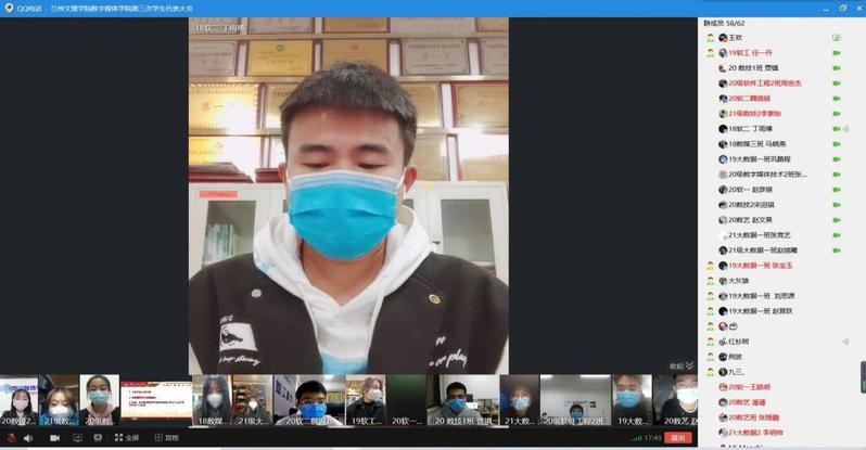 2021年11月10日晚,yl7703永利第三次学生代表大会在线上召开。yl7703永利党总支书记陈小琴,副院长张毅,校团委副书记安婧,yl7703永利团学办主任荆波、分团委负责人霍峒宇,校学生会主席团成员黄菁宇及yl7703永利54名学生代表参加了会议。