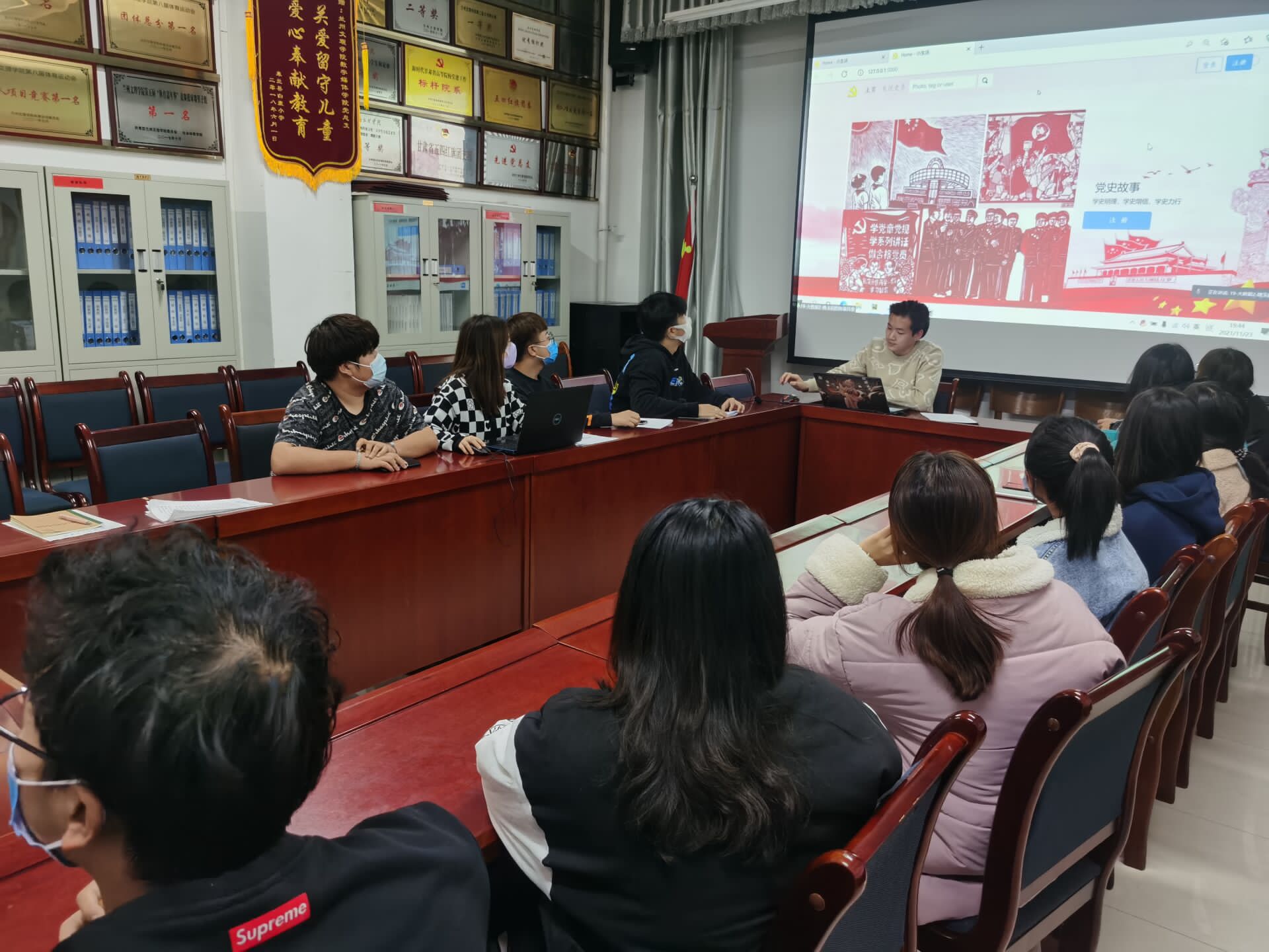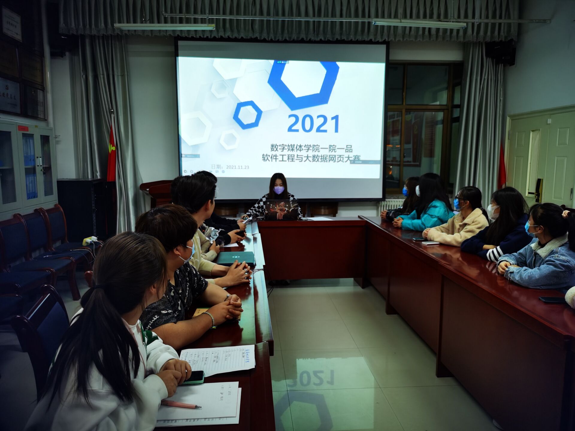2021年11月23日,yl7703永利如期举行“一院一品”活动,因疫情原因,yl7703永利主席团成员,yl7703永利分团委及19级,20级,21级各班团支书线下观看活动,参赛选手及观众在线上参加活动。