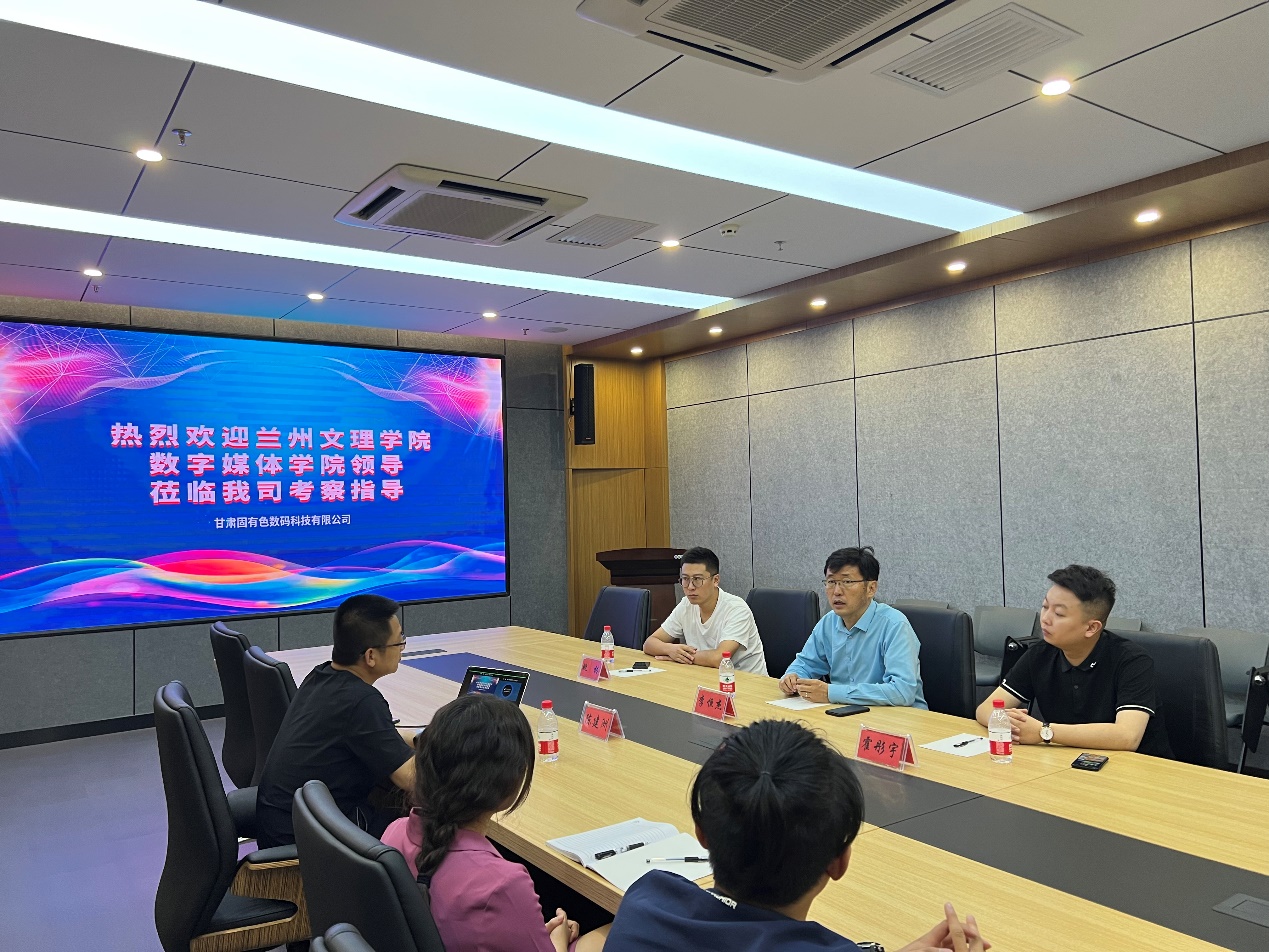 实验室中心主任姚林、就业办主任霍峒宇与甘肃固有色数码科技有限公司等部门相关负责人就人才需求与招聘、学生实习实践和项目化人才培养等工作开展了深入交流。
