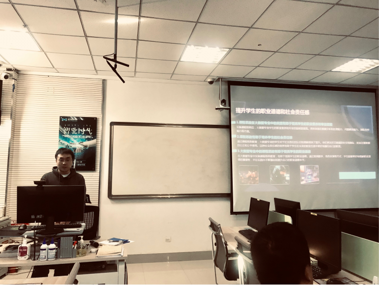 研讨会上,每位教师依次发言,分享自己将课程思政融入教学中的经验,其中数媒专业集群研讨会会场的王士勇老师和软工大数据专业集群研讨会会场的张成文、岳庆生老师重点发言,通过PPT展示,对教学中的课程思政建设进行了详细介绍。