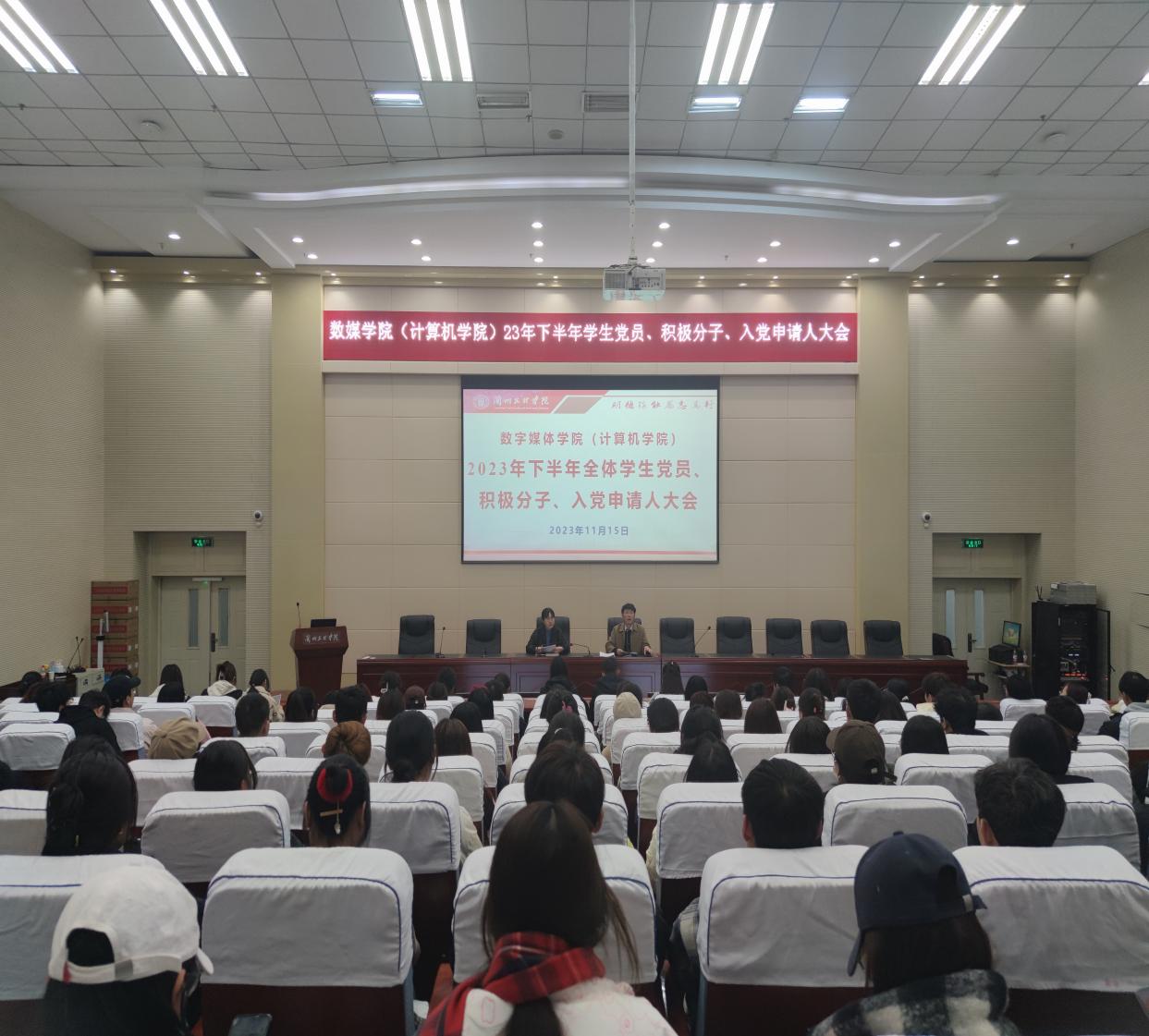 11月15日中午,yl7703永利于致远楼学术报告厅召开2023年下半年全体学生党员、积极分子、入党申请人大会。会议由yl7703永利院长、党总支副书记李恒杰主持,数媒学院党建办主任周琦及学院全体学生党员、积极分子、入党申请人与会。