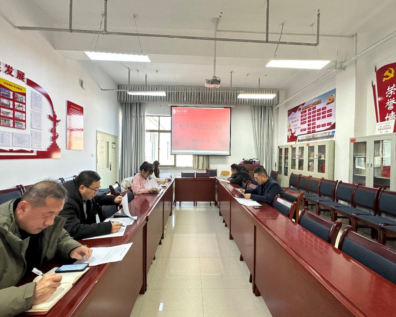 12月27日下午,数媒学院党总支组织召开党支部书记工作例会暨党务骨干培训会。会议由学院党总支副书记、院长孙亮主持,党总支副书记、副院长张毅,所属5个党支部书记、党建办负责人与会。