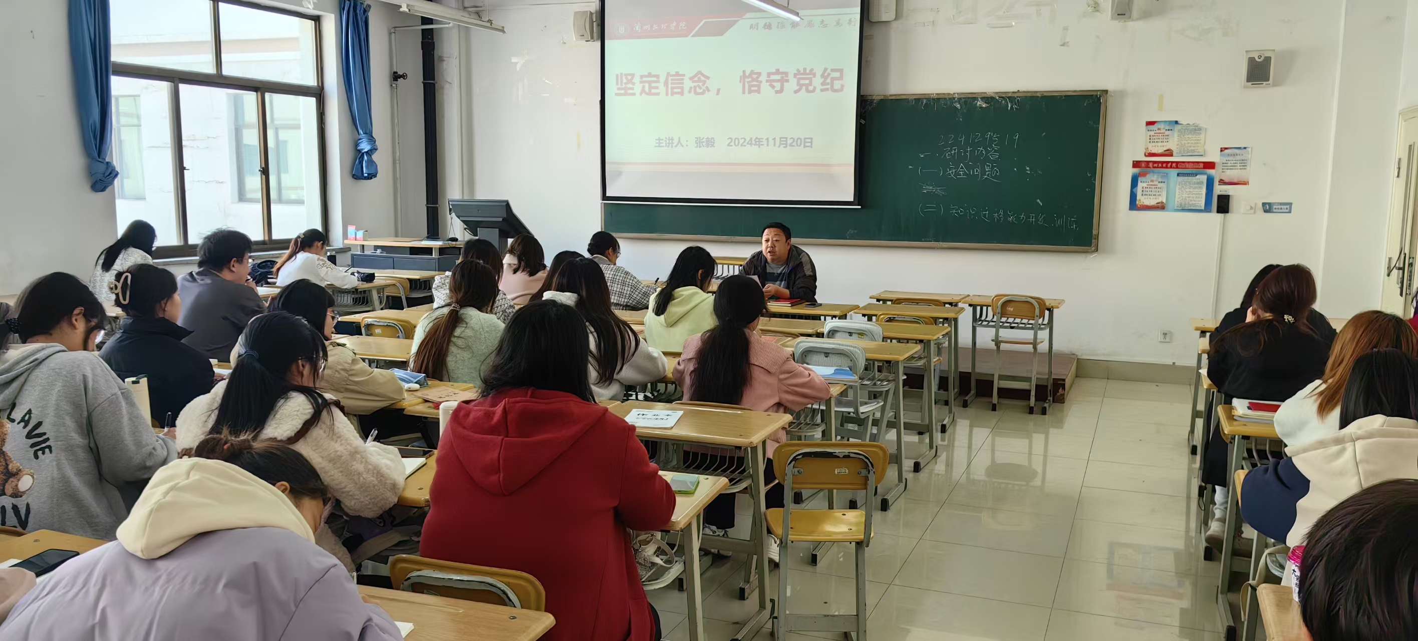 为深入学习贯彻习近平总书记关于党纪学习教育的重要讲话精神和重要指示精神,引导全体发展对象、积极分子真正做到学纪、知纪、明纪、守纪,推动党纪学习教育走深走实。11月20日,yl7703永利党总支副书记、行政副院长为2024下半年发展对象、积极分子讲授以《坚定信念,恪守党纪》为主题的纪律专题党课。
