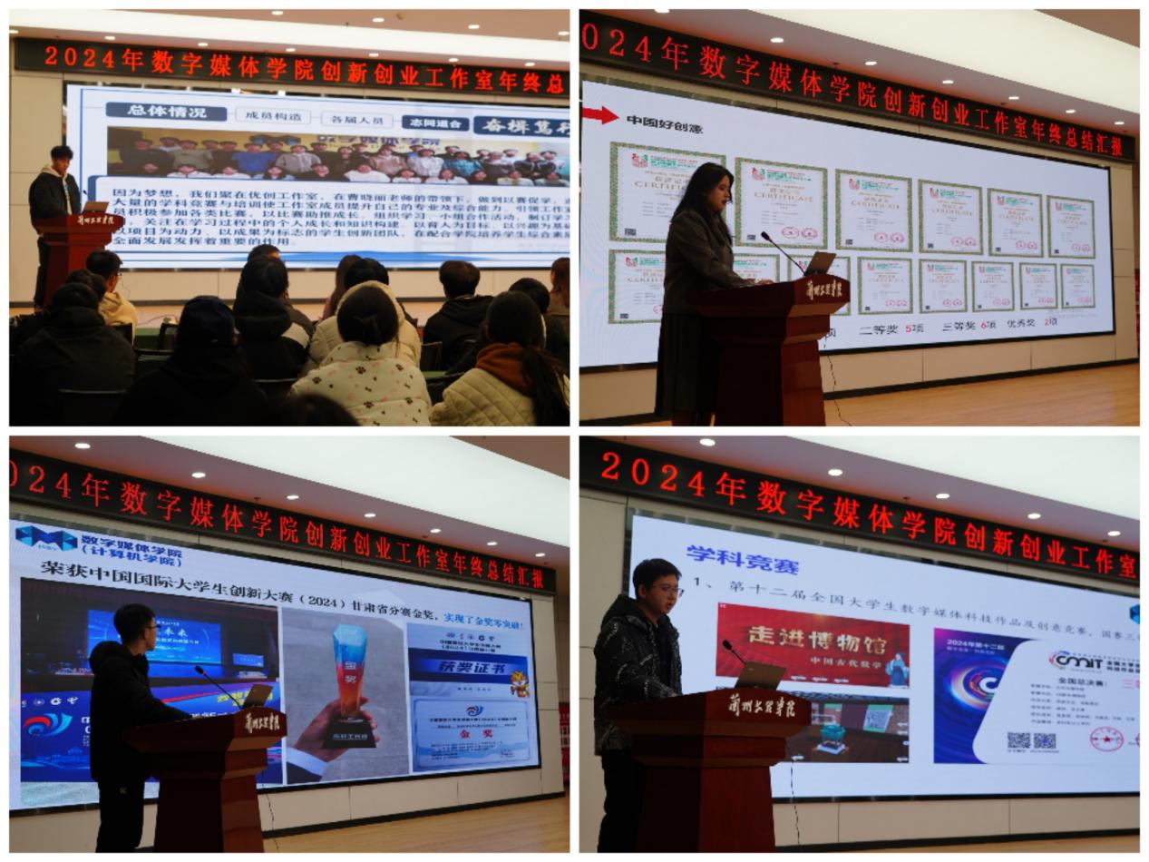 12 30 日晚,yl7703永利在文昌楼 302 报告厅成功举办2024 年创新创业工作室年终总结汇报会。学院领导、专业教师及工作室全体成员参与此次会议。